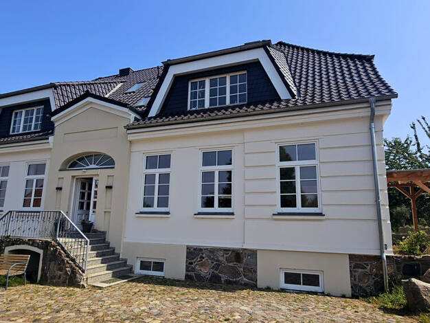 Diese traumhafte 5-Zimmer-Wohnung befindet sich im Erdgeschoss eines 1806 massiv gebauten Gutshauses (es besteht kein Denkmalschutz), welches in den Jahren 2024/2025 umfassend saniert wurde. In den J...