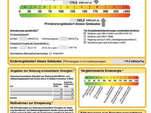 Energiebedarfsausweis Energiebedarfswert: 176,9 kWh / m²a Energieeffizienzklasse: F Gültigkeit des Energieausweises bis 13.12.2032 Baujahr Gebäude laut Energieausweis: 1907 Wesentlicher Energieträger...