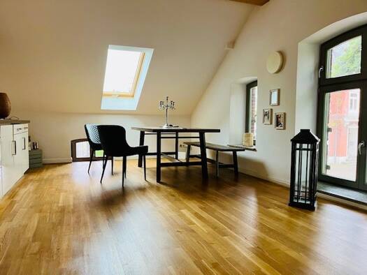 Loftartige Eigentumswohnung mit offener Küche und eigener Terrasse und kleinem Garten. Holzdielen, verputzte Wände, modernes Duschbad, neuwertige Einbauküche und Einbauschränke. Sehr nette und kleine...