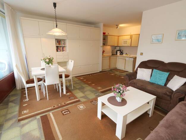 Es handelt sich hierbei um eine komplett ausgestattete und möblierte Ferienwohnung, inklusive eines Stellplatzes, als Kapitalanlage oder auch zur Eigennutzung. In dem Möbelpaket enthalten sind Großmö...