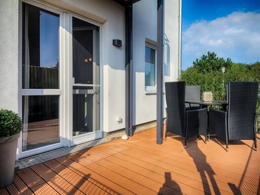 Zum Verkauf steht eine 2015 fertiggestellte luxuriöse Erdgeschosswohnung in zentraler und Strand naher Lage Westerlands, in der Nähe des Strandübergangs „Brandenburger Platz“. Gut durchdachte und kre...