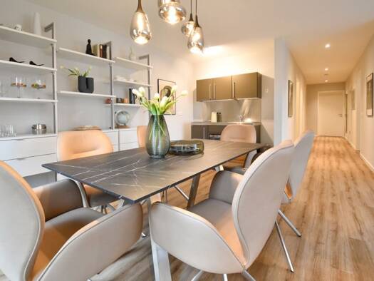 Willkommen in Ihrem neuen Zuhause! Diese moderne, barrierefreie und möblierte Erdgeschosswohnung mit einer Wohnfläche von ca. 100 m² bietet Ihnen modernen Wohnkomfort im Erstbezug. Die Wohnung ist ei...