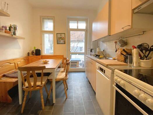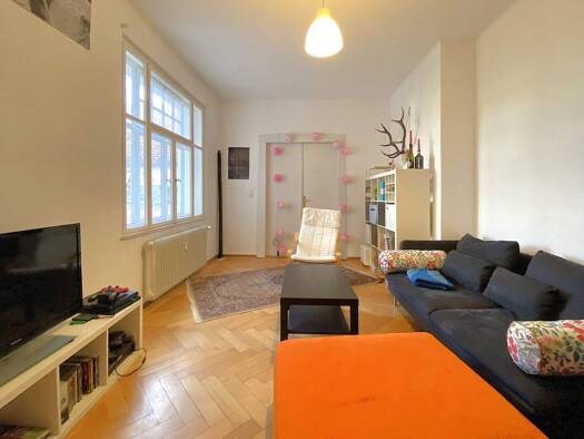 Das denkmalgechützte Gebäude stammt ursprünglich aus dem Baujahr 1892 und wurde im Jahr 1994 kernsaniert. Die Wohnung selbst befindet sich im 1. Obergeschoss und ist über das zentral gelegene Treppen...