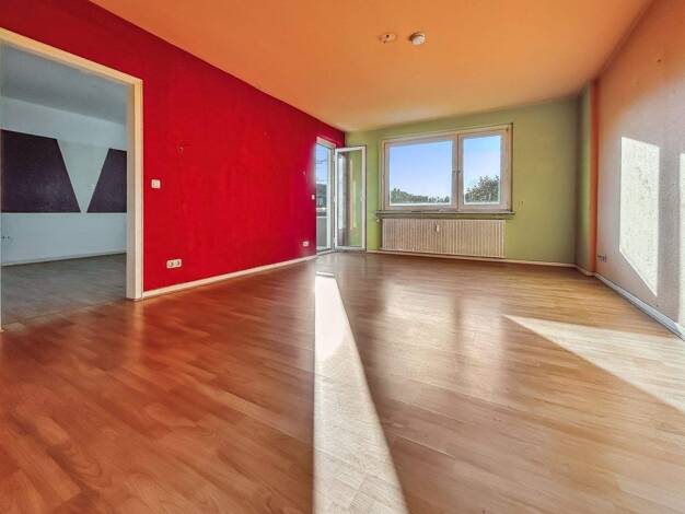 Die hier angebotene 2-Zimmerwohnung befindet sich im Hochparterre und verfügt über Wohnzimmer, Schlafzimmer, Küche, Diele, Bad und Balkon, welcher vom Wohnzimmer aus zugänglich ist. Vom Balkon geht d...