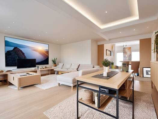 Ein sehr schlüssiges, komfortables, ganz helles Zuhause aus einem Guss, das sich vollkommen stressfrei beziehen lässt! Mit seiner hochwertigen, konsequent in weiß gehaltenen Ausstattung in Kombinatio...
