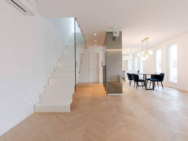 Dieses einzigartige Penthouse befindet sich in einem modernen Ensemble Baujahr 2019 mit einem begrünten, charmanten Innenhof. Über den hübschen Innengarten gelangt man in das Neubaugebäude, das ruhig...