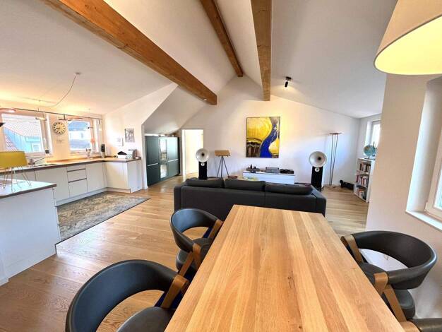 Diese exklusive 3-ZKB-Dachgeschosswohnung bietet ca. 120 m² Wohnfläche und eine besondere Wohnatmosphäre. Das Highlight ist die großzügige Dachterrasse mit einem beeindruckenden Blick über die Dächer...