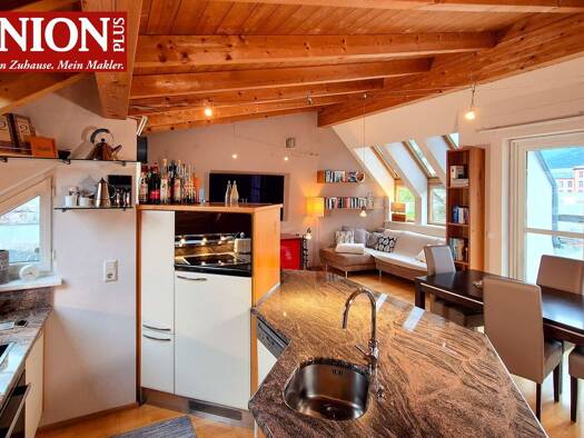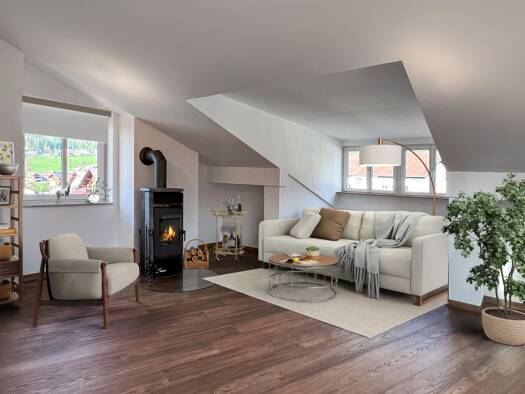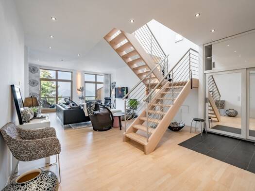 Diese stilvoll gestaltete Maisonettewohnung erstreckt sich über zwei Ebenen und überzeugt mit einem durchdachten Grundriss, der sowohl Paaren als auch einer kleinen Familie ein komfortables und gemüt...