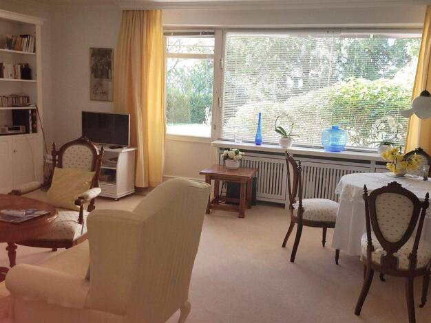 Die gepflegte Wohnung befindet sich im Erdgeschoss einer kleinen Anlage auf einem circa 3000qm großen Grundstück in Nienstedten. Die Anlage ist im Reihenhausstil gebaut und aufgrund der versetzten Ba...