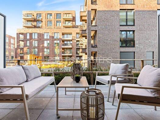 Luxuriöse Drei-Zimmer-Erdgeschosswohnung mit großzügiger Terrasse, Elb- & Hafenblick In einem der exklusivsten Wohnensembles Hamburgs, dem Aquamarine, präsentiert sich diese außergewöhnlich schön...
