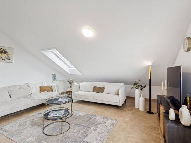 Diese gemütliche 3,5-Zimmerwohnung bietet Ihnen neben einer tollen Dachloggia, einen großen Wohn- und Essbereich mit Kamin und offener Küche. Die Küche ist mit einer modernen Einbauküche mit Induktio...