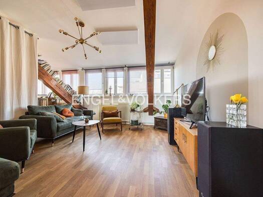 Diese besondere 2,5-Zimmer-Wohnung mit ca. 109 m² Wohnfläche befindet sich im 4. Obergeschoss eines denkmalgeschützten Gebäudes, das im Jahr 2003 umfassend saniert wurde. Die gelungene Kombination au...