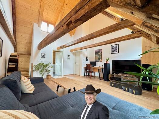 Wichtig vorweg: Diese Dachgeschosswohnung ist kein "klassisches" Neubauobjekt. Der sichtbare Dachstuhl aus dem Jahr 1780 bringt bewusst Charakter, Unebenheiten und eine unverwechselbare Handschrift m...