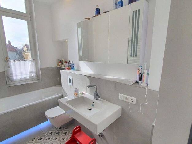 Die Wohnung wurde vor fünf Jahren vollständig saniert und renoviert. Sehr hell im 2. Obergeschoß (von insgesamt 4 Etagen, ohne Aufzug) gelegen. Alle Wände, Türen und Fußböden sind aufgearbeitet und g...