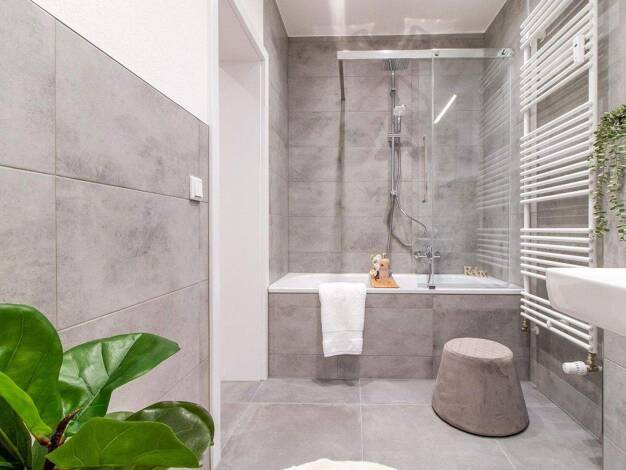 Raumaufteilung Beim eintreten in die Wohnung überzeugt ein geräumiger und heller Flur . Alle Räume sind vom Flur aus einzeln begehbar. Das lichtdurchflutete Tageslichtbad bietet genügend Stauraum sow...