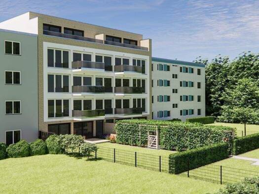 Die Wohnung verfügt über einen eigenen Privatgarten (57m²) mit nord-westlicher Ausrichtung. Das äußere Erscheinungsbild der Stadtvillen ist klassisch modern gestaltet. Mit ihren geradlinigen Formen u...