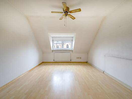 Schöne, gut geschnittene 3-ZW (Maisonette) im 4. OG (DG) eines gepflegten MFH in Karlsruhe-Oststadt. - Balkon - Einbauküche - Tageslichtbad mit Wanne, Dusche, WC, WM-Anschluss - sep. WC - Laminat- un...