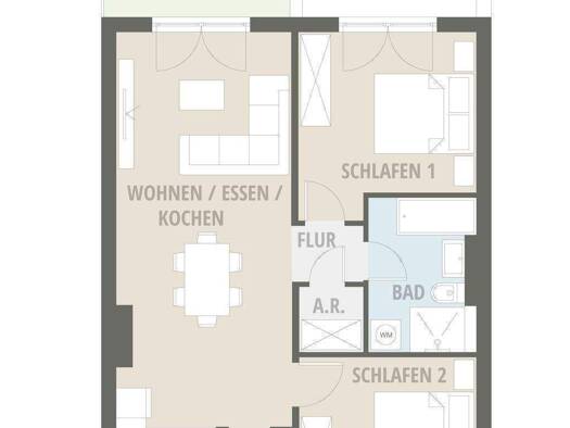 Die 2-Zimmer-Wohnung im Erdgeschoss eines Mehrfamilienhauses bietet auf ca. 54,2 m² Wohnfläche ein gemütliches Zuhause. Die Wohnung verfügt über einen ca. 20 m² großen Wohnbereich mit Zugang zum Balk...
