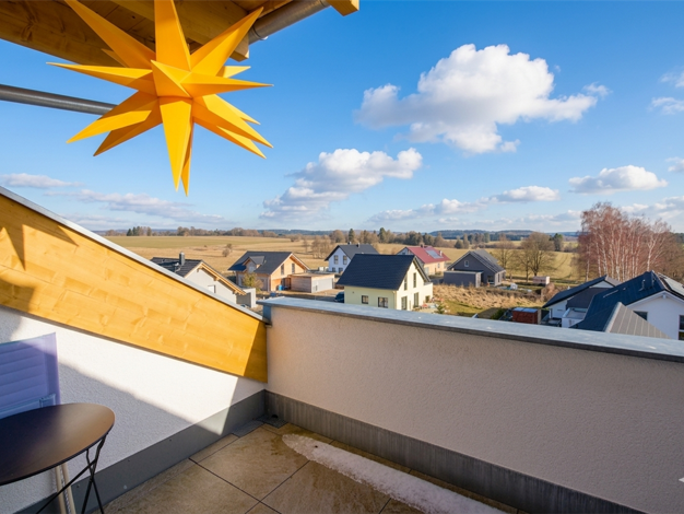 Stellen Sie sich vor, wie Sie Ihren Morgenkaffee mit Blick auf die sanften Hügel genießen - auf dem Ostbalkon begrüßt Sie die Sonne, auf dem Südbalkon lässt sich der Tag in aller Ruhe ausklingen. Die...