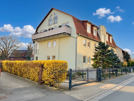 Helle und sehr schön geschnittene 3-Zimmer-Wohnung in ruhiger und grüner Lage von Heidenau mit großem Balkon, großem Bad, Gäste-WC, Abstellraum in der Wohnung, Abstellraum im Keller und Einzelstellpl...