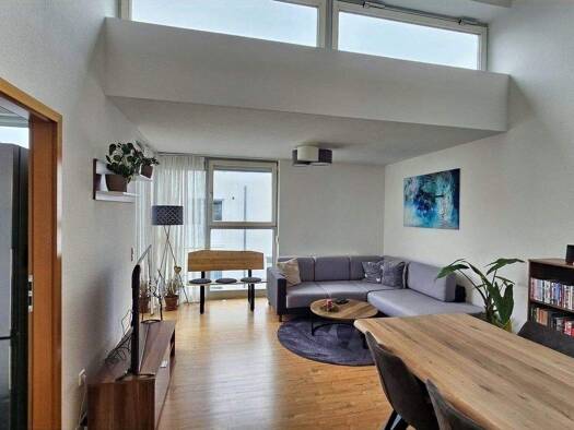Diese außergewöhnliche 2-Zimmer-Wohnung im 2. Obergeschoss erstreckt sich über zwei Etagen und bietet eine Gesamtwohnfläche von 84,59 m². Der offene Wohn-Essbereich, das Schlafzimmer, das Badezimmer ...