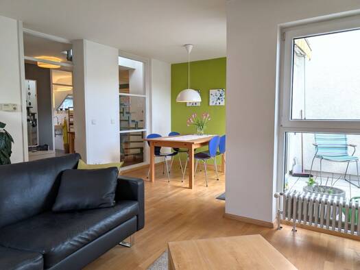 Diese moderne Maisonettewohnung überzeugt durch ihren besonderen Charme und ein offenes, lichtdurchflutetes Wohnkonzept. Auf zwei Ebenen verteilen sich insgesamt 4,5 Zimmer, die ein großzügiges Raumg...