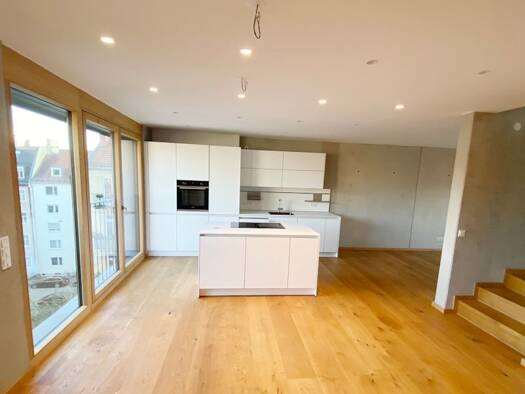 Diese außergewöhnliche 4,5-Zimmer-Maisonette-Wohnung bietet eine einzigartige Kombination aus Raum, Licht und gestalterischen Möglichkeiten. Auf zwei Etagen erleben Sie urbanes Wohnen mit einem Höchs...