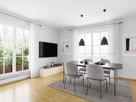 Außergewöhnlich großzügige Erdgeschoss-Terrassenwohnung mit Süd-Garten. Die Besonderheit im Erdgeschoss liegt in den direkt aus den Wohnungen mit zugänglichem Hobbyraum im Souterrain. Diese Terrassen...