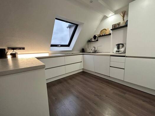 In einer gepflegten Wohnanlage aus dem Jahr 1983, umgeben von einer großzügigen und liebevoll angelegten Außenanlage, wartet diese hochwertig sanierte Dachgeschoss-Maisonettenwohnung darauf, Ihr neue...