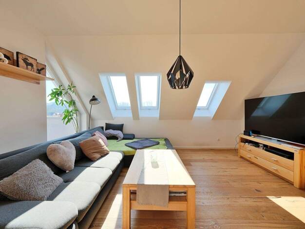 Modernes Wohnen mit viel Licht, Luft und einem besonderen Wohngefühl: Diese attraktive Maisonettewohnung im neu ausgebauten Dachgeschoss vereint eine durchdachte Raumaufteilung mit einer außergewöhnl...