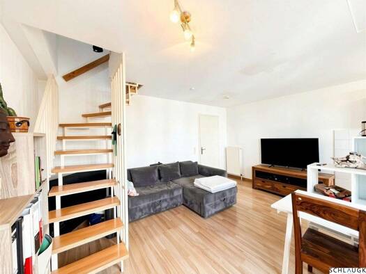 Diese außergewöhnliche Maisonette vereint Großzügigkeit, Licht und Wohnkomfort zu einem stimmigen Gesamtbild. Hohe Decken, großzügige Fensterflächen und eine offene Galerie schaffen ein helles, lufti...