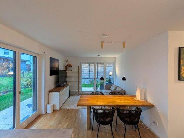 Exklusive 4-Zimmer-Maisonette mit privatem Garten (KfW 40+) in Traunstein. Erfüllen Sie sich den Traum vom exklusiven Wohnen im Herzen des Chiemgaus! Diese beeindruckende 4-Zimmer-Gartenwohnung im re...