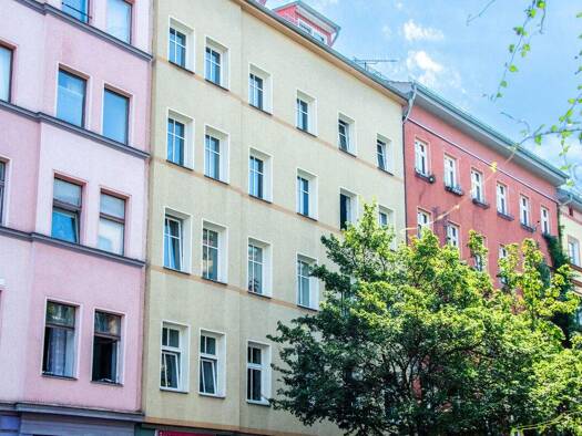Die Fassade der Marchlewskistraße 77 fügt sich unaufgeregt in das Friedrichshainer Straßenbild ein. Wer hier vorbeigeht, ahnt kaum, was sich dahinter verbirgt: ein außergewöhnliches Zuhause mit großz...