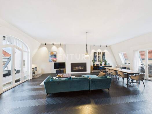 Die Wohnung befindet sich im Dachgeschoss eines um 1897 errichteten Altbaus. Der Ausbau des Dachgeschosses erfolgte 1993/1994. Die architektonisch äußerst eindrucksvolle Wohnung begeistert den Besuch...