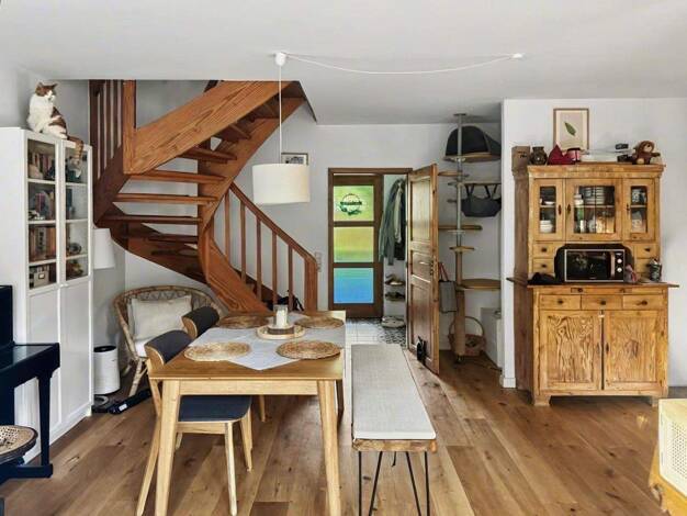 Die charmante Maisonette befindet sich in der sanierten historischen Remise im Innenhof. Im Erdgeschoß befinden sich der Garderobenbereich, der Koch- / Ess- und der Wohnbereich, sowie Gäste-WC und ei...