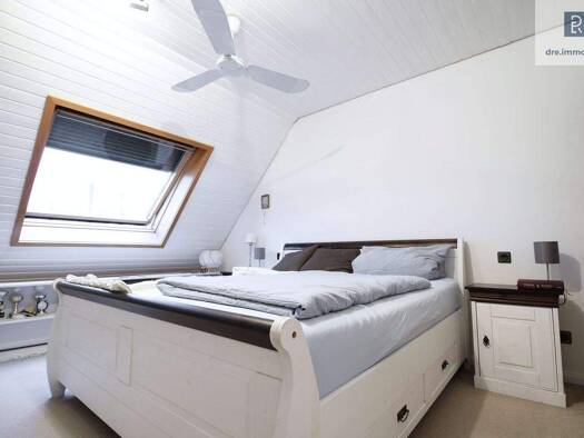 Lichtdurchflutete Maisonette mit Holzdach und modernisiertem Wohlfühlbad Diese gepflegte Maisonette-Wohnung bietet eine Gesamtfläche von ca. 97 m², die sich über das zweite Obergeschoss und das Dachg...