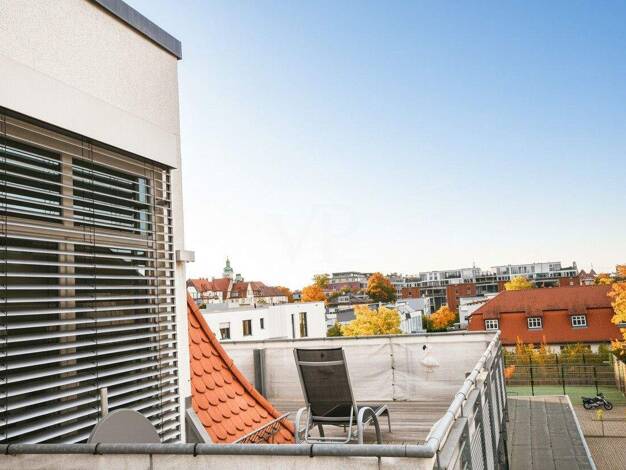 Diese Maisonettewohnung erstreckt sich über zwei Ebenen und bietet ein besonderes Wohngefühl mit klar getrennten Wohnbereichen. Der Blick über die Dächer von Fürth verleiht der Wohnung eine offene, u...