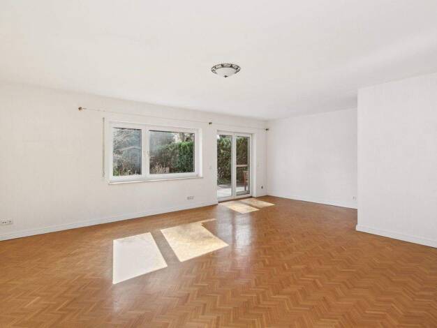 IHRE VORTEILE MIT DIESER IMMOBILIE + Ideal für Paare, Senioren und Familien: Moderne und seniorenfreundliche Vierzimmerwohnung im Erdgeschoss und Souterrain + Helles und großzügiges Wohnzimmer mit vi...