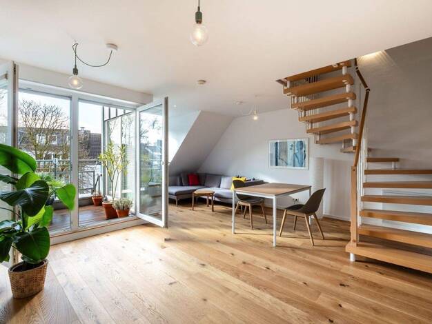 Diese Maisonettewohnung im 4. Ober- und Dachgeschoss eines gepflegten Mehrfamilienhauses verbindet urbanes Wohnen mit dem besonderen Charakter eines Dachgeschosses. Das ursprüngliche Gebäude stammt a...