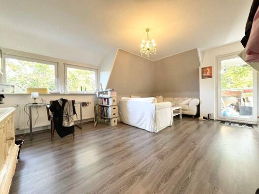 Versteckt am Ende einer Sackgasse, umgeben von Grün und Licht: Diese Maisonettewohnung in Münster-Kinderhaus ist Rückzugsort und Lebensraum zugleich - mit Platz auf zwei Ebenen und dem Gefühl von Zuh...