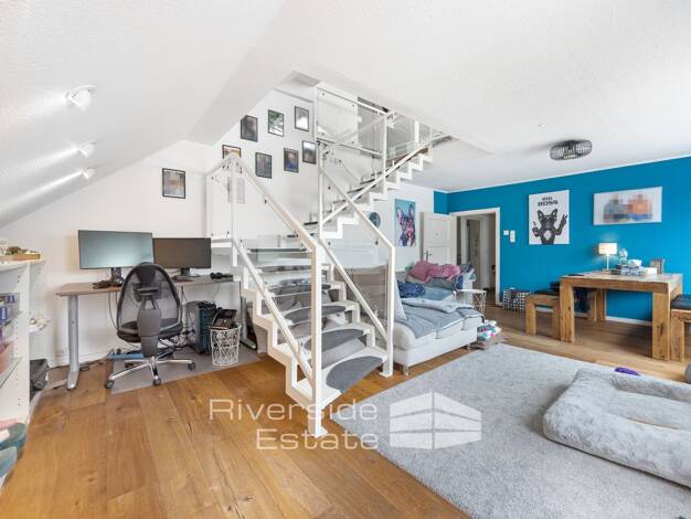 Die angebotene Maisonettewohnung verfügt über eine Wohnfläche von ca. 144,03 m² und erstreckt sich über zwei Ebenen. Ergänzt wird das Raumangebot durch ein Studio im ausgebauten Dachgeschoss, das als...
