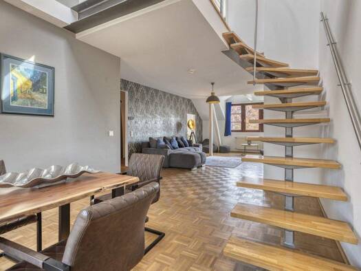 Entdecken Sie eine außergewöhnliche Maisonette-Wohnung in Düsseldorf-Grafenberg, die modernen Wohnkomfort mit einem einzigartigen Design verbindet! Diese charmante Immobilie, erbaut im Jahr 1989, bie...