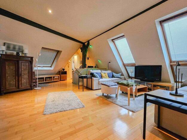 Diese gepflegte Maisonettewohnung befindet sich in einem schönen Altbau in beliebter Lage. Über den Dächern von Bornheim genießt man in der Wohnung die Ruhe durch die dreifach verglasten Fenster. Vie...