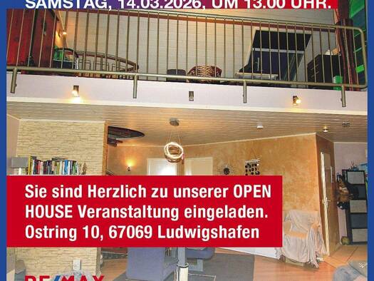 Open House, Samstag, den 14.03.2026, um 13.00 Uhr. Sie sind Herzlich zu unserer OPEN HOUSE Veranstaltung eingeladen. Die Adresse lautet: Ostring 10 67069 Ludwigshafen Der Kaufpreis in Höhe von 199.00...