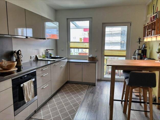 Diese attraktive Maisonettewohnung vereint großzügiges Wohnen mit einem besonderen Grundriss und viel Tageslicht. Sie liegt in einer gepflegten, überschaubaren Wohnanlage mit nur acht Parteien und bi...