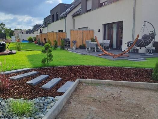 Die modernen 4,5 Raum-Wohnungen/Reihenhäuser in der Reihenhausanlage sind mit einem Kaminofen und einer Fußbodenheizung ausgestattet. Im Erdgeschoss befindet sich ein großes Wohnzimmer mit angrenzend...