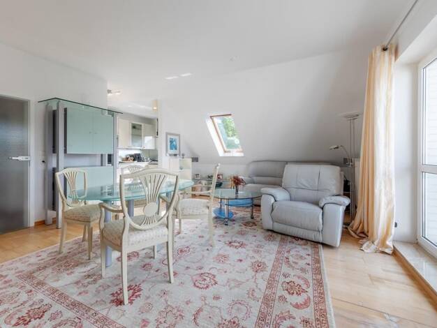Diese nahezu perfekt ausgestattete und kürzlich sehr aufwendig renovierte 4 Zimmer Maisonette-Wohnung erfüllt „fast“ jeden Wunsch. Sie liegt in der 1. Obergeschoss und im Dachgeschoss einer kleinen W...