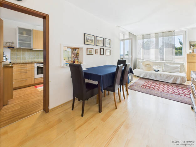 Die gepflegte Wohnung ist sehr funktionell geschnitten. Alle Räume werden vom Flur aus erschlossen. Zur Südseite liegen drei große Wohnräume und der Balkon. Wohnzimmer und Esszimmer sind mit einer gr...