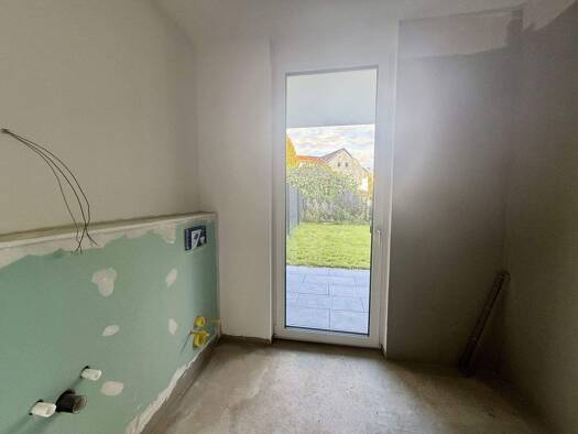 Die attraktive Erdgeschosswohnung mit einer einladenden Terrasse, moderner Einbauküche, Garten sowie einer Garage und einem KFZ-Stellplatz präsentiert sich in ruhiger Lage am Ortsanfang von Gerolfing...