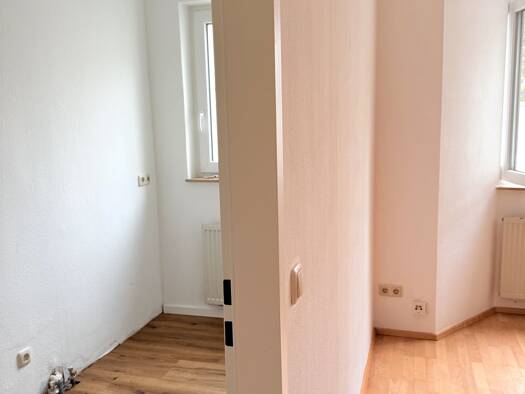 Helle zwei Zimmer Wohnung im Hochparterre. Balkon und Gartenmitbenutzung zur Rückseite. Es besteht die Möglichkeit einen direkten Zugang vom Balkon zum Garten zu erstellen. Die Wohnung ist frei und w...